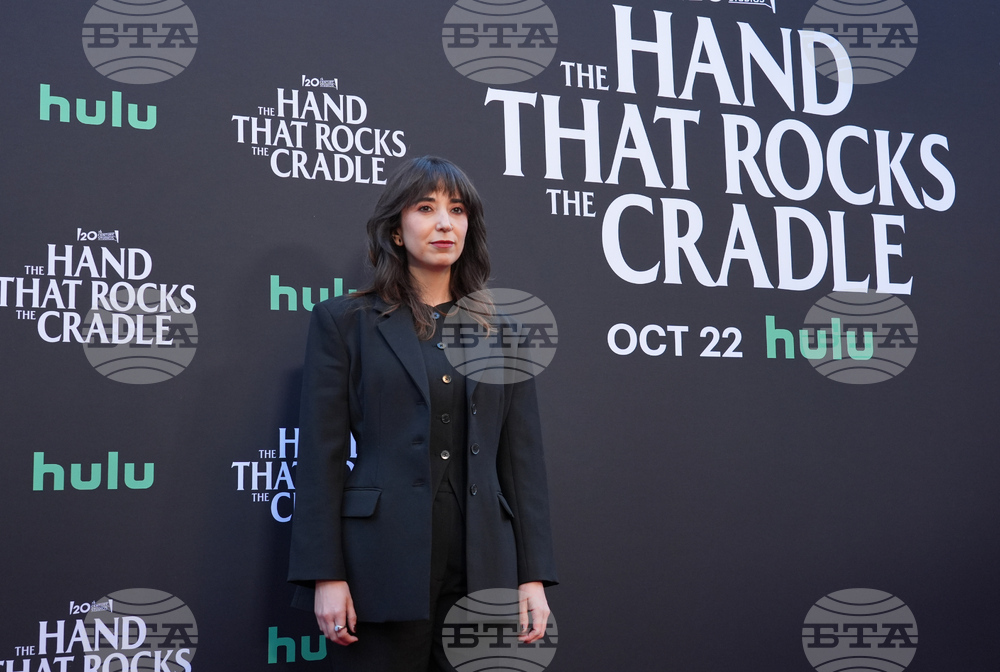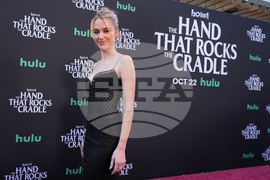 Maika Monroe, a cast member in "The Hand That Rocks the Cradle," poses at the premiere of the film on Wednesday, Oct. 15, 2025, at The Walt Disney Studios in Burbank, Calif. (AP Photo/Chris Pizzello)