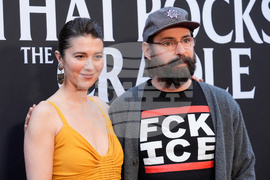 Mary Elizabeth Winstead, left, and Martin Starr, cast members in "The Hand That Rocks the Cradle," pose together at the premiere of the film on Wednesday, Oct. 15, 2025, at The Walt Disney Studios in Burbank, Calif. (AP Photo/Chris Pizzello)