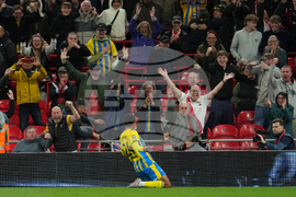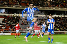 Brighton and Hove Albion's Diego Gomez celebrates scoring during the English League Cup third round soccer match between Barnsley and Brighton & Hove Albion at Oakwell Stadium, Barnsley, England, Tuesday Sept. 23, 2025. (Cody Froggatt/PA via AP)