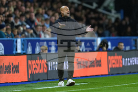 Manchester City's head coach Pep Guardiola gives instructions during the English League Cup third round soccer match between Huddersfield and Manchester City at the John Smith's stadium, in Huddersfield, England, Wednesday, Sept. 24, 2025. (AP Photo/Jon Super),