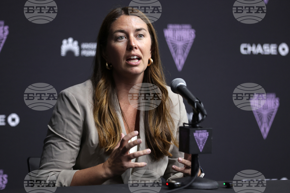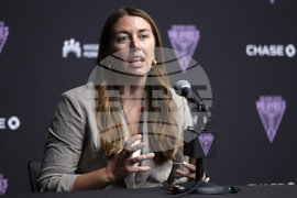 Golden State Valkyries' president Jess Smith speaks during press conference in Oakland, Calif., on Tuesday, Sept. 23, 2025. (Scott Strazzante/San Francisco Chronicle via AP)