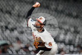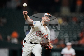Baltimore Orioles starting pitcher Dean Kremer delivers during the first inning of a baseball game against the Tampa Bay Rays, Tuesday, Sept. 23, 2025, in Baltimore. (AP Photo/Stephanie Scarbrough)