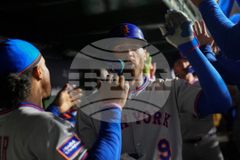 New York Mets' Brandon Nimmo (9) celebrates his three-run home run during the fifth inning of a baseball game against the Chicago Cubs, Tuesday, Sept. 23, 2025, in Chicago. (AP Photo/Erin Hooley)