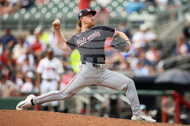Atlanta Braves pitcher Tyler Kinley delivers in the eighth inning of a baseball game against the Washington Nationals, Wednesday, Sept. 24, 2025, in Atlanta. (AP Photo/Colin Hubbard)