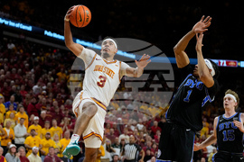 FILE - Iowa State guard Tamin Lipsey (3) drives to the basket past BYU guard Trey Stewart (1) during overtime in an NCAA college basketball game, March 4, 2025, in Ames, Iowa. (AP Photo/Charlie Neibergall, File)
