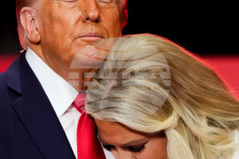 President Donald Trump hugs Erika Kirk at the conclusion of a memorial for her husband, conservative activist Charlie Kirk, Sunday, Sept. 21, 2025, at State Farm Stadium in Glendale, Ariz. (AP Photo/Julia Demaree Nikhinson)