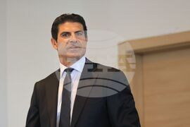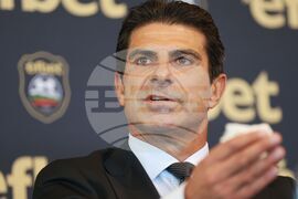 София (24 септември 2025) В Национална футболна база „Бояна“ се провежда заседание на Изпълнителния комитет на Българския футболен съюз (БФС). След края на заседанието се състоя брифинг. На снимката: изпълнителният директор на БФС Андрей Петров.