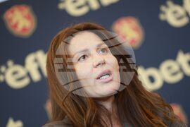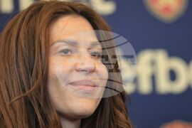 София (24 септември 2025) В Национална футболна база „Бояна“ се провежда заседание на Изпълнителния комитет на Българския футболен съюз (БФС). След края на заседанието се състоя брифинг. На снимката: Мила Христова, член на изпълкома на БФС.