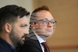 София (24 септември 2025) В Национална футболна база „Бояна“ се провежда заседание на Изпълнителния комитет на Българския футболен съюз (БФС). След края на заседанието се състоя брифинг. На снимката: заместник изпълнителният директор на БФС Добрин Гьонов (вдясно).