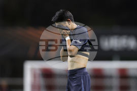 Feyenoord's Tsuyoshi Watanabe reacts at the end of the Europa League opening phase soccer match between SC Braga and Feyenoord at the Municipal stadium in Braga, Portugal, Wednesday, Sept. 24, 2025. (AP Photo/Miguel Angelo Pereira)
