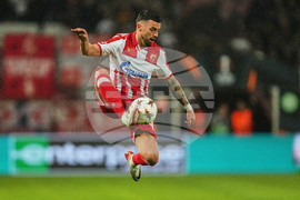Red Star's Nemanja Radonjic controls the ball in the air during the Europa League soccer match between Red Star and Celtic at the Rajko Mitic Stadium in Belgrade, Serbia, Wednesday, Sept. 24, 2025. (AP Photo/Darko Vojinovic)