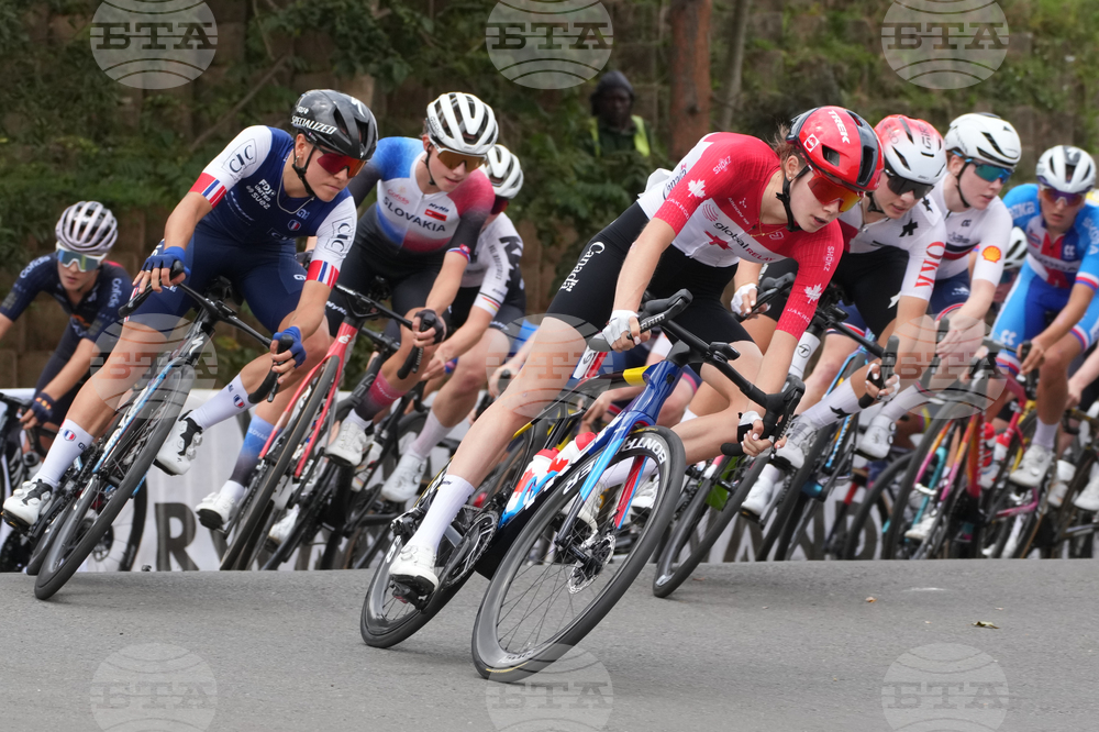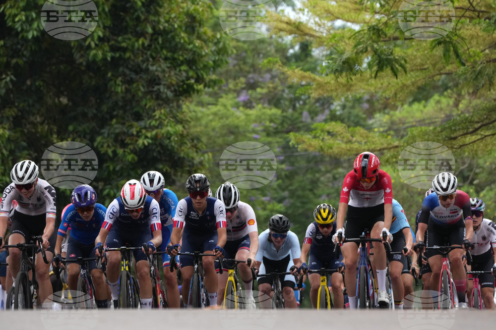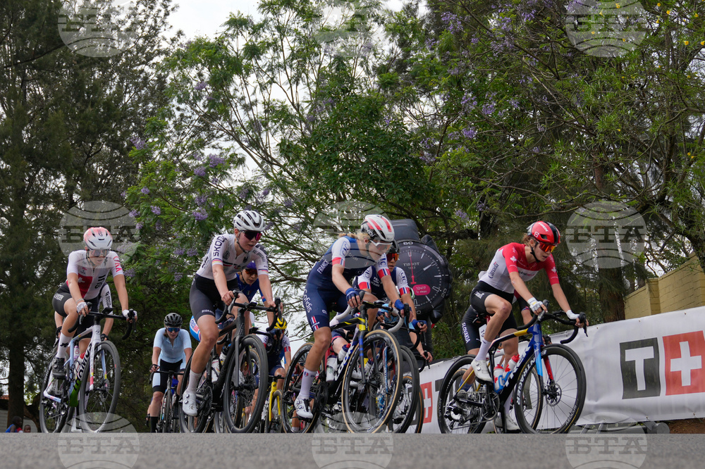 Competitors pedal during the women's Under 23 race, at the road cycling World Championships in Kigali, Rwanda, Thursday, Sept. 25, 2025. (AP Photo/Jerome Delay)