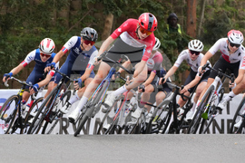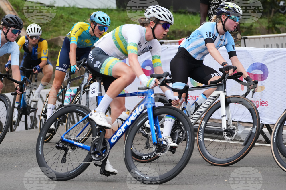Australia's Talia Appleton, foreground, pedals during the women's Under 23 race, at the road cycling World Championships in Kigali, Rwanda, Thursday, Sept. 25, 2025. (AP Photo/Jerome Delay)
