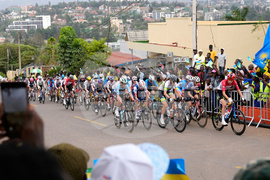 Spectators watch the men's Under 23 road race, at the road cycling World Championships in Kigali, Rwanda, Friday, Sept. 26, 2025. (AP Photo/Jerome Delay)