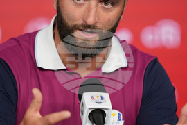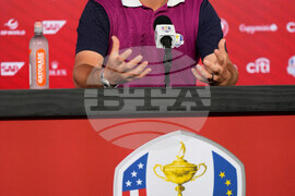 Europe's Jon Rahm speaks during a news conference at the Ryder Cup golf tournament, Thursday, Sept. 25, 2025, on the Bethpage Black golf course, in Farmingdale, N.Y. (AP Photo/Seth Wenig)