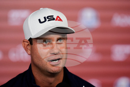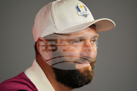 United States' Harris English speaks during a news conference at the Ryder Cup golf tournament, Thursday, Sept. 25, 2025, on the Bethpage Black golf course, in Farmingdale, N.Y. (AP Photo/Robert Bukaty)