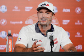 United States captain Keegan Bradley speaks during a news conference at the Ryder Cup golf tournament, Thursday, Sept. 25, 2025, on the Bethpage Black golf course, in Farmingdale, N.Y. (AP Photo/Matt Slocum)