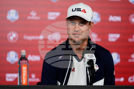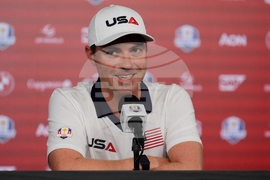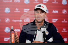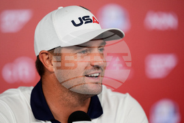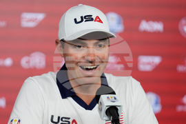 United States' Sam Burns speaks during a news conference at the Ryder Cup golf tournament, Thursday, Sept. 25, 2025, on the Bethpage Black golf course, in Farmingdale, N.Y. (AP Photo/Robert Bukaty)