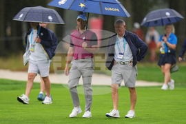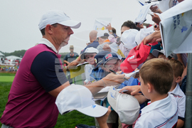 Europe captain Luke Donald signs during a practice round at the Ryder Cup golf tournament, Thursday, Sept. 25, 2025, on the Bethpage Black golf course, in Farmingdale, N.Y.(AP Photo/Seth Wenig)