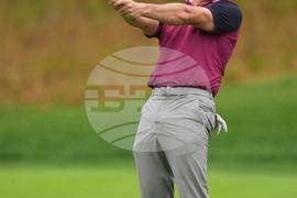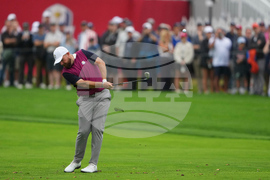 Europe's Shane Lowry hits from the fairway on the first hole during a practice round at the Ryder Cup golf tournament, Thursday, Sept. 25, 2025, on the Bethpage Black golf course, in Farmingdale, N.Y. (AP Photo/Lindsey Wasson)