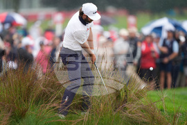 United States' Justin Thomas hits from the rough on the fifth hole at Bethpage Black golf course during the Ryder Cup golf tournament, Friday, Sept. 26, 2025, in Farmingdale, N.Y. (AP Photo/Matt Slocum)
