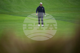 Europe's Tommy Fleetwood signs on the second hole during a practice round at the Ryder Cup golf tournament, Thursday, Sept. 25, 2025, on the Bethpage Black golf course, in Farmingdale, N.Y. (AP Photo/Seth Wenig)