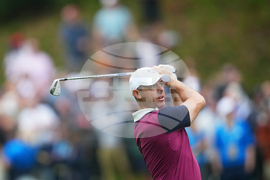 Europe's Rory McIlroy watches his tee shot on the seventh hole during a practice round at the Ryder Cup golf tournament, Thursday, Sept. 25, 2025, on the Bethpage Black golf course, in Farmingdale, N.Y. (AP Photo/Seth Wenig)