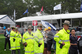 New York State Park Police watch the crowd during a practice round at the Ryder Cup golf tournament, Thursday, Sept. 25, 2025, on the Bethpage Black golf course, in Farmingdale, N.Y. (AP Photo/Lindsey Wasson)