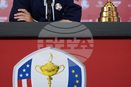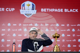 Europe captain Luke Donald speaks during a news conference at the Ryder Cup golf tournament, Thursday, Sept. 25, 2025, on the Bethpage Black golf course, in Farmingdale, N.Y. (AP Photo/Matt Slocum)