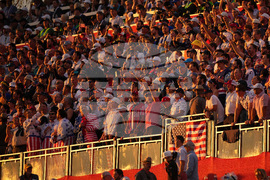 Fans watch on the second hole at Bethpage Black golf course during the Ryder Cup golf tournament, Friday, Sept. 26, 2025, in Farmingdale, N.Y. (AP Photo/Seth Wenig)
