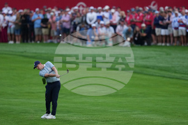 Matthew Fitzpatrick hits from the fairway on the first hole at Bethpage Black golf course during the Ryder Cup golf tournament, Friday, Sept. 26, 2025, in Farmingdale, N.Y. (AP Photo/Lindsey Wasson)