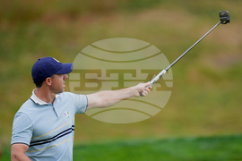 Europe's Rory McIlroy reacts after missing a putt on the eighth hole during a practice round at the Ryder Cup golf tournament, Thursday, Sept. 25, 2025, on the Bethpage Black golf course, in Farmingdale, N.Y. (AP Photo/Seth Wenig)