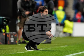 Rangers manager Russell Martin watches from the touchline during a Europa League soccer match against Genk at Ibrox Stadium in Glasgow, Scotland, Thursday, Sept. 25, 2025. (Andrew Milligan/PA via AP)
