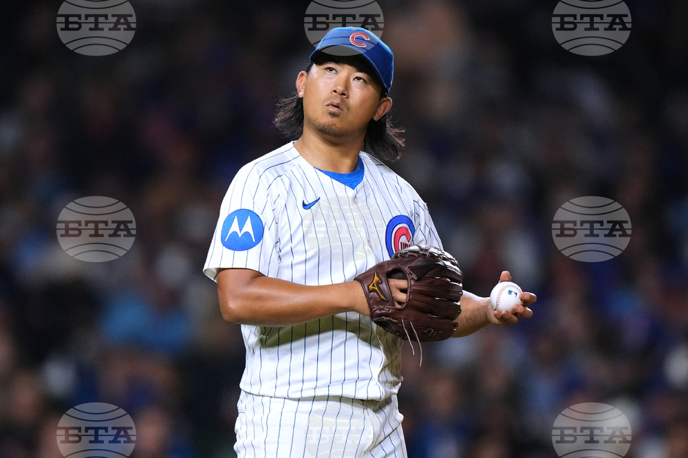 Chicago Cubs starting pitcher Shota Imanaga, of Japan, watches after New York Mets' Brett Baty hit a three-run home run during the fourth inning of a baseball game in Chicago, Thursday, Sept. 25, 2025. (AP Photo/Nam Y. Huh)