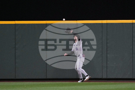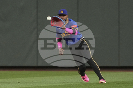 Colorado Rockies center fielder Brenton Doyle catches a fly out by Seattle Mariners' Luke Raley during the sixth inning of a baseball game, Thursday, Sept. 25, 2025, in Seattle. (AP Photo/Ryan Sun)