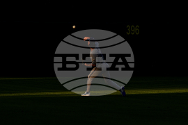 Kansas City Royals pitcher Michael Lorenzen (24) warms-up against the Los Angeles Angels before a baseball game Thursday, Sept. 25, 2025, in Anaheim, Calif. (AP Photo/Wally Skalij)