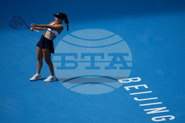 Elena-Gabriela Ruse, of Romania returns a shot from Emma Navarro, of the United States during the women's singles match for the China Open tennis tournament, at the National Tennis Center, in Beijing, Saturday, Sept. 27, 2025. (AP Photo/Andy Wong)