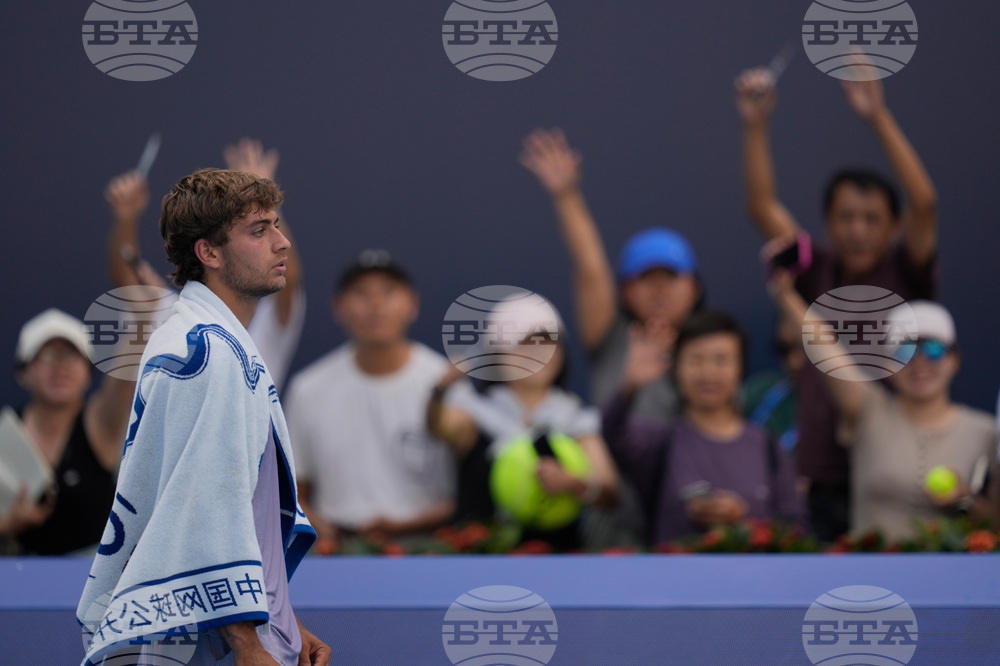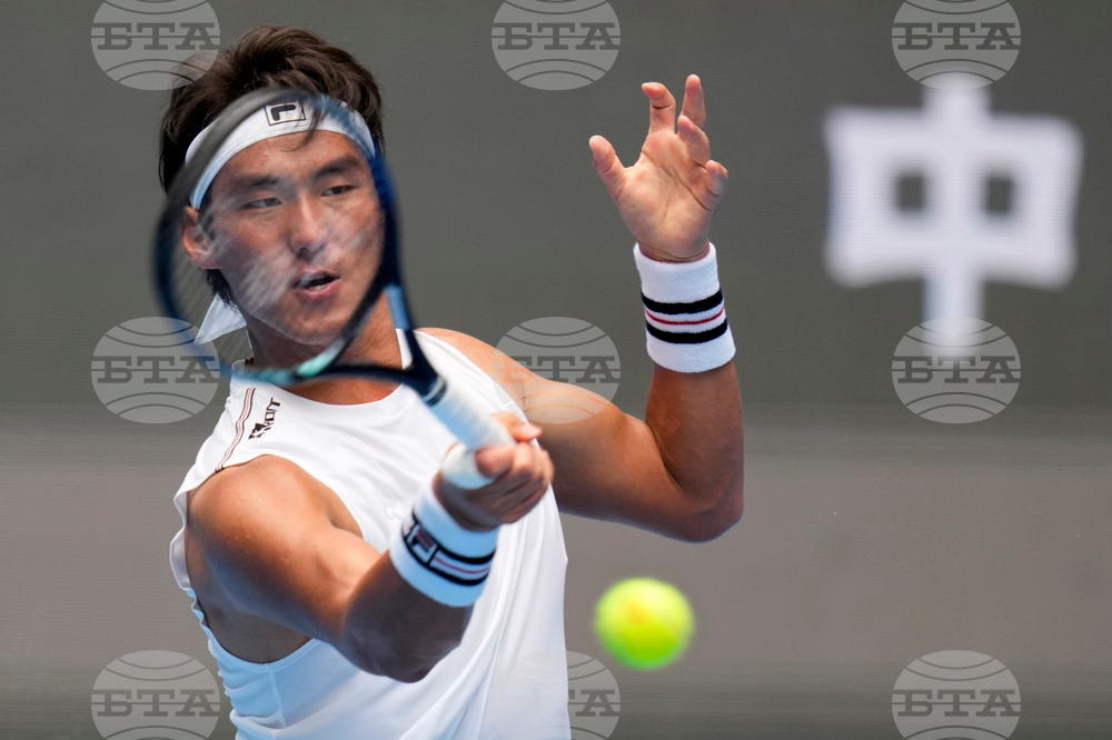 Bu Yunchaokete of China returns a shot from Alex De Minaur of Australia in a men's singles match for the China Open tennis tournament in Beijing, China, Friday, Sept. 26, 2025. (AP Photo/Ng Han Guan)