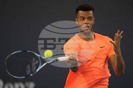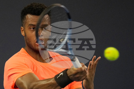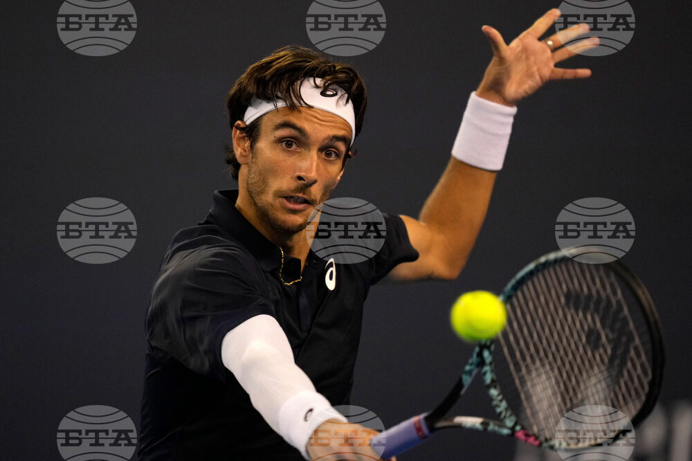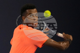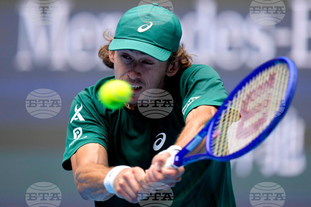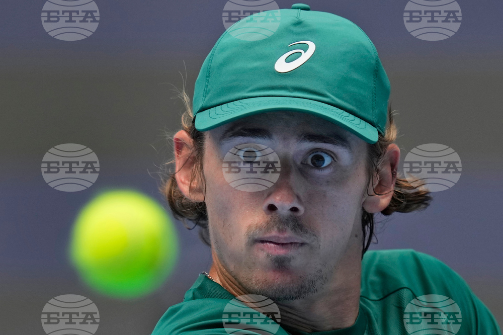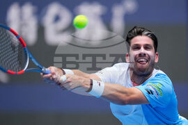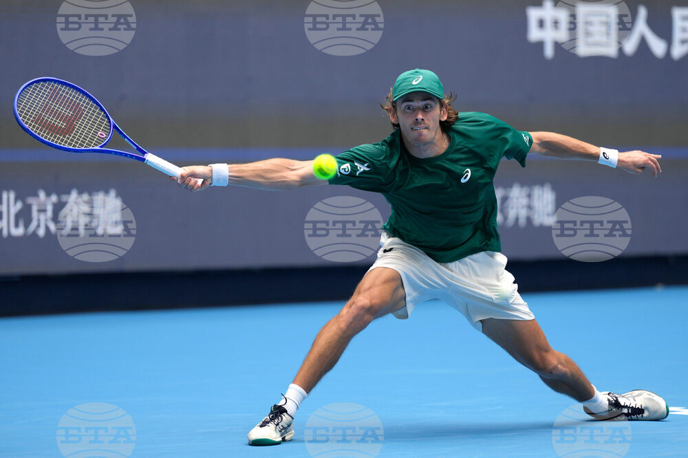 Alex De Minaur of Australia returns a shot from Bu Yunchaokete of China in a men's singles match for the China Open tennis tournament in Beijing, China, Friday, Sept. 26, 2025. (AP Photo/Ng Han Guan)