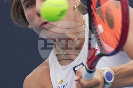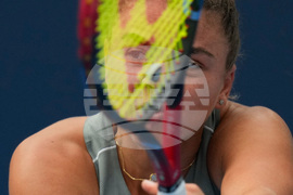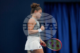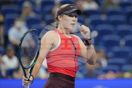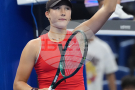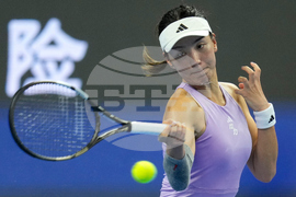 Emma Navarro, of the United States plays against Elena-Gabriela Ruse, of Romania during the women's singles match for the China Open tennis tournament, at the National Tennis Center, in Beijing, Saturday, Sept. 27, 2025. (AP Photo/Andy Wong)