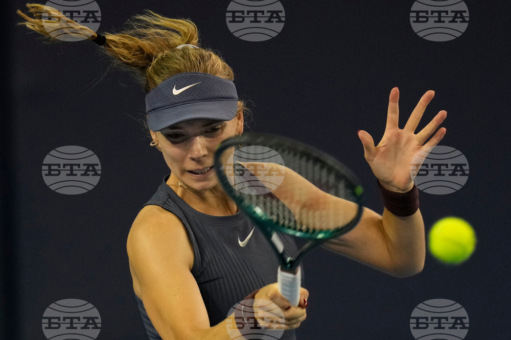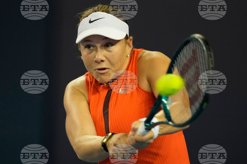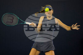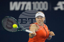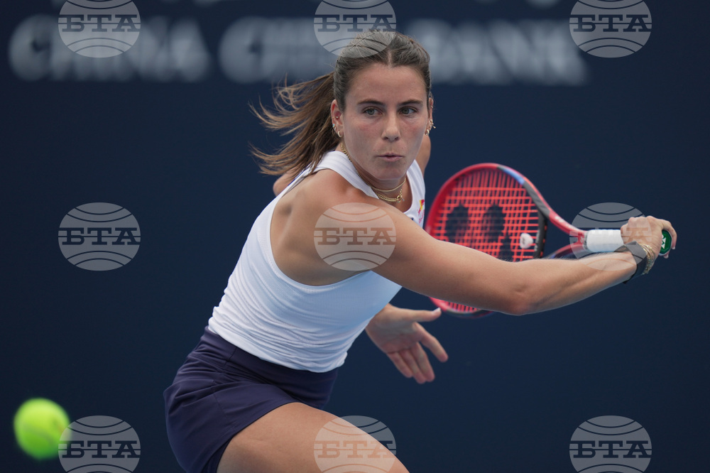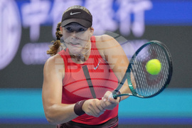 Katie Boulter of Great Britain returns a shot from Amanda Anisimova of the United States in a women's singles match for the China Open tennis tournament in Beijing, China, Friday, Sept. 26, 2025. (AP Photo/Ng Han Guan)