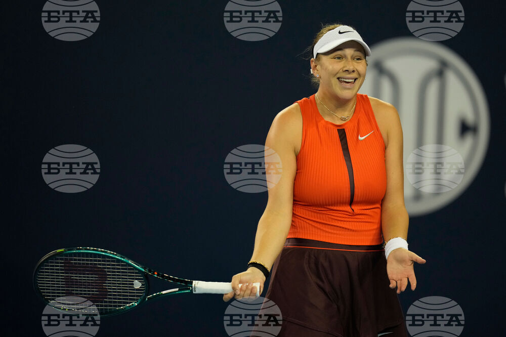 Amanda Anisimova of the United States reacts during play against Katie Boulter of Great Britain in a women's singles match for the China Open tennis tournament in Beijing, China, Friday, Sept. 26, 2025. (AP Photo/Ng Han Guan)