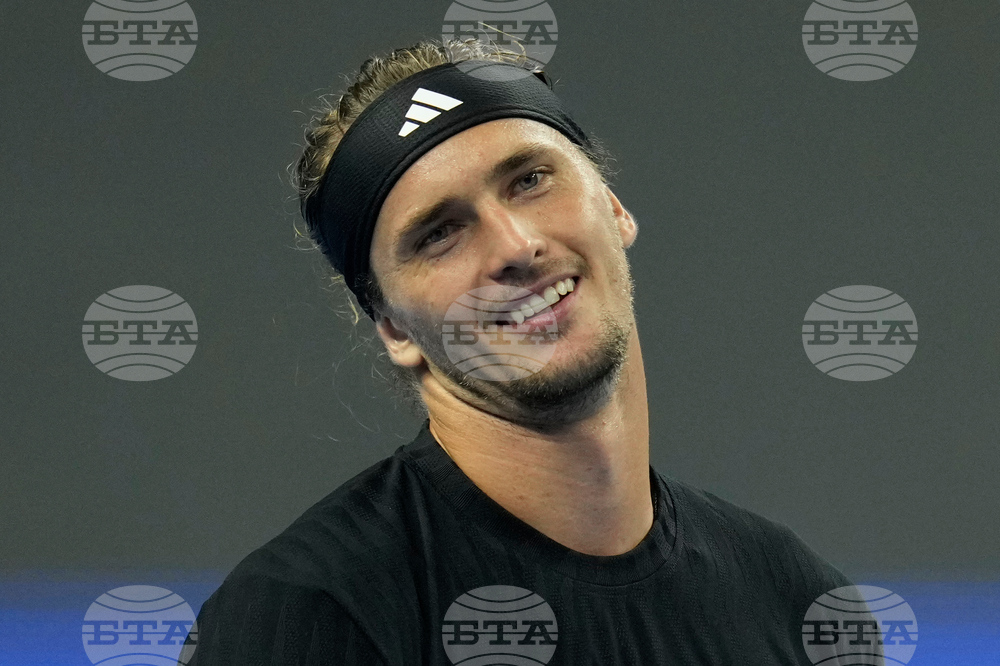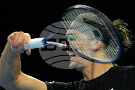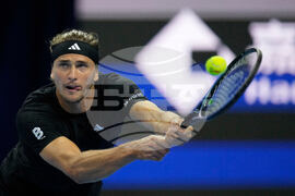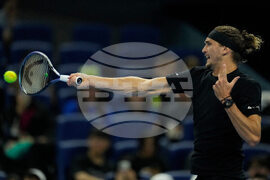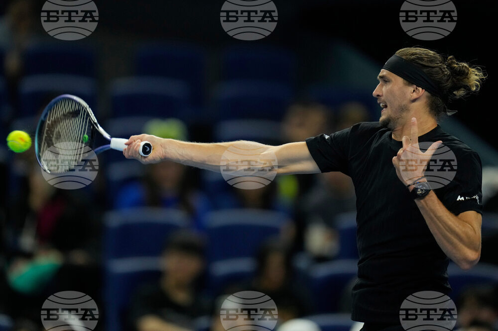 Alexander Zverev of Germany returns a shot from Lorenzo Sonego of Italy in a men's singles match for the China Open tennis tournament in Beijing, China, Friday, Sept. 26, 2025. (AP Photo/Ng Han Guan)
