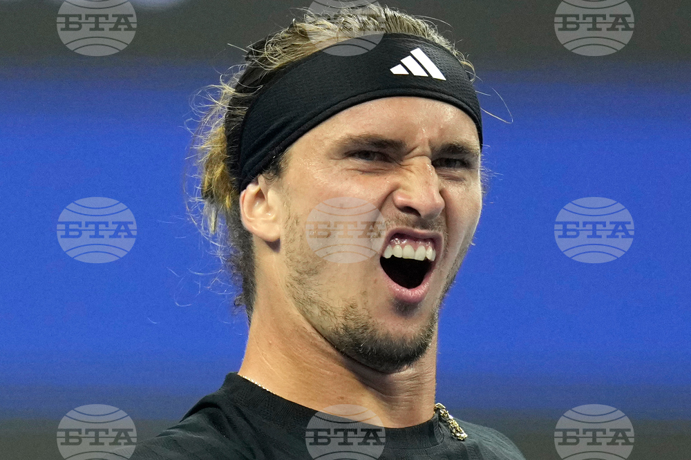 Alexander Zverev of Germany celebrates after defeating Lorenzo Sonego of Italy in a men's singles match for the China Open tennis tournament in Beijing, China, Friday, Sept. 26, 2025. (AP Photo/Ng Han Guan)