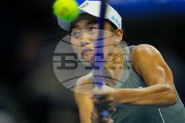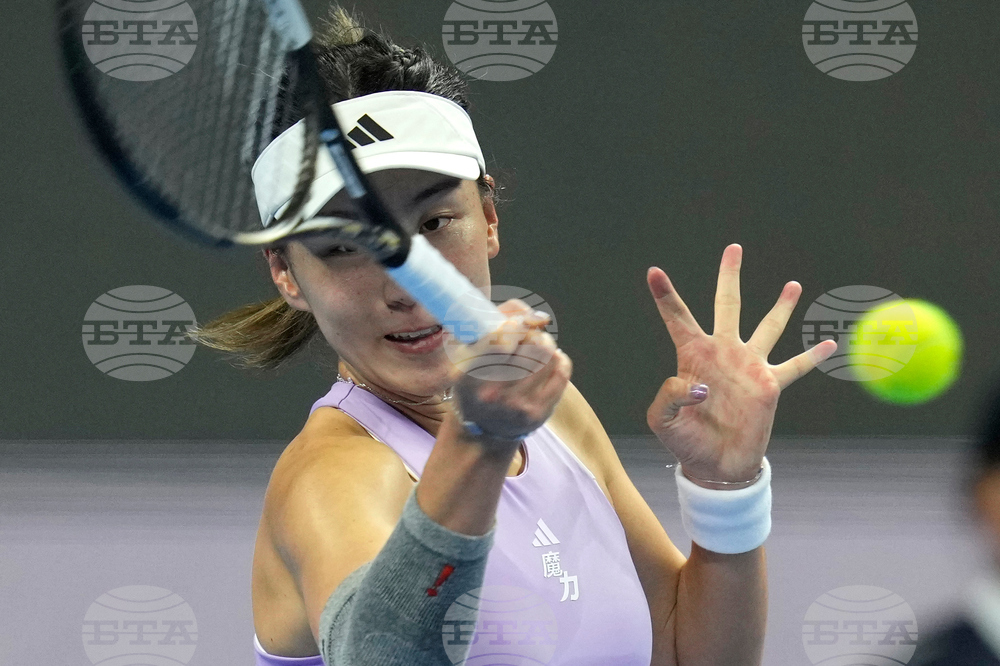 Zhang Shuai of China returns a shot from compatriot Wang Xinyu during a women's singles match for the China Open tennis tournament in Beijing, China, Friday, Sept. 26, 2025. (AP Photo/Ng Han Guan)