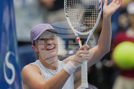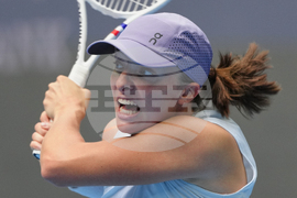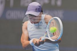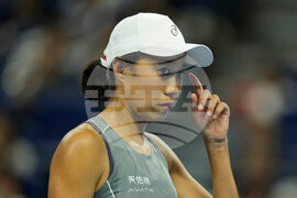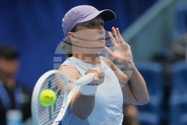 Iga Swiatek, of Poland returns a shot from Yuan Yue, of China during the women's singles match for the China Open tennis tournament, at the National Tennis Center, in Beijing, Saturday, Sept. 27, 2025. (AP Photo/Andy Wong)