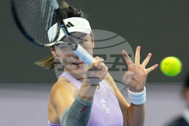 Emma Navarro, of the United States returns a shot from Elena-Gabriela Ruse, of Romania during the women's singles match for the China Open tennis tournament, at the National Tennis Center, in Beijing, Saturday, Sept. 27, 2025. (AP Photo/Andy Wong)