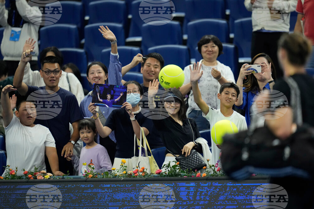 Fans waves to Alexander Zverev of Germany after he defeated Lorenzo Sonego of Italy in a men's singles match for the China Open tennis tournament in Beijing, China, Friday, Sept. 26, 2025. (AP Photo/Ng Han Guan)
