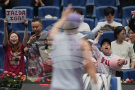 Fans of Iga Swiatek, of Poland cheer after Swiatek defeating Yuan Yue, of China in the women's singles match for the China Open tennis tournament, at the National Tennis Center, in Beijing, Saturday, Sept. 27, 2025. (AP Photo/Andy Wong)