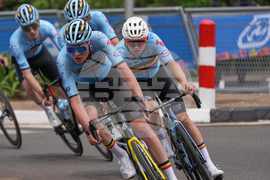 Italy team pedals during the men's Under 23 road race, at the road cycling World Championships in Kigali, Rwanda, Friday, Sept. 26, 2025. (AP Photo/Jerome Delay)